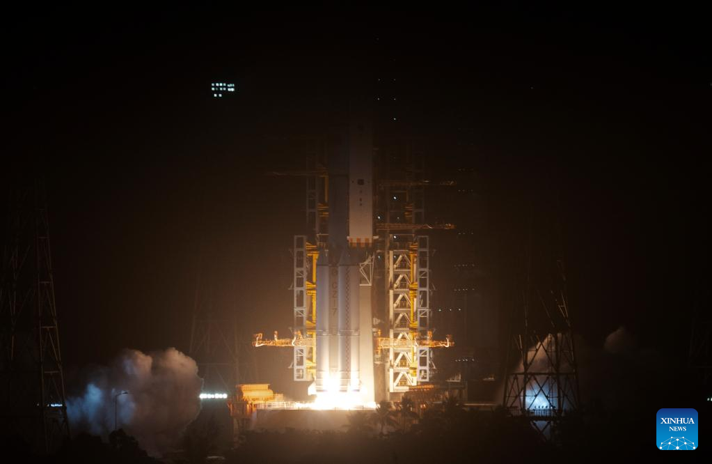 The Long March-7 Y5 rocket, carrying Tianzhou-4, blasts off from the Wenchang Spacecraft Launch Site in south China's Hainan Province, May 10, 2022. China launched cargo spacecraft Tianzhou-4 on Tuesday to deliver supplies for its space station which is scheduled to wrap up construction this year. (Xinhua/Tian Dingyu)