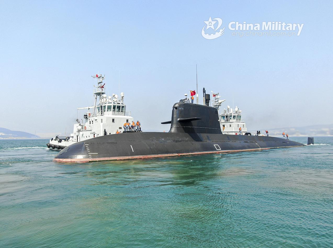 A submarine attached to a submarine flotilla with the navy under the PLA Northern Theater Command is ready to set sail for the maritime combat training exercise on April 19, 2022. (eng.chinamil.com.cn/Photo by Shi Jialong)