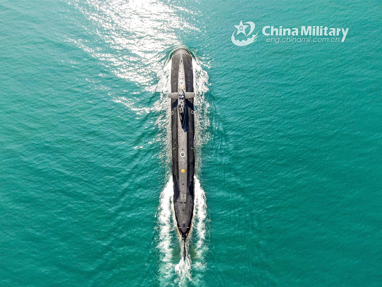 A submarine attached to a submarine flotilla with the navy under the PLA Northern Theater Command steams at full speed during a maritime combat training exercise on April 19, 2022. (eng.chinamil.com.cn/Photo by Shi Jialong)