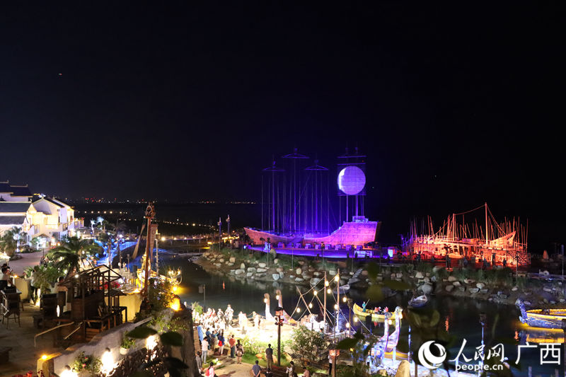 During the nights, an interactive show can be seen performed on stage along the seaside. (People's Daily Online/Qin Xin)