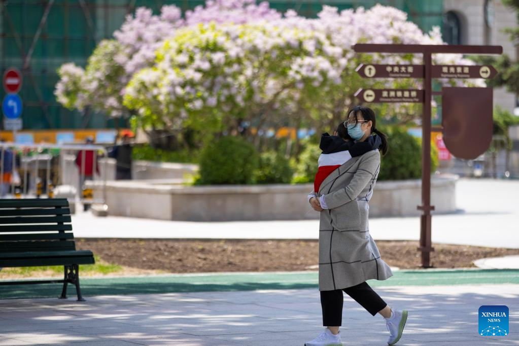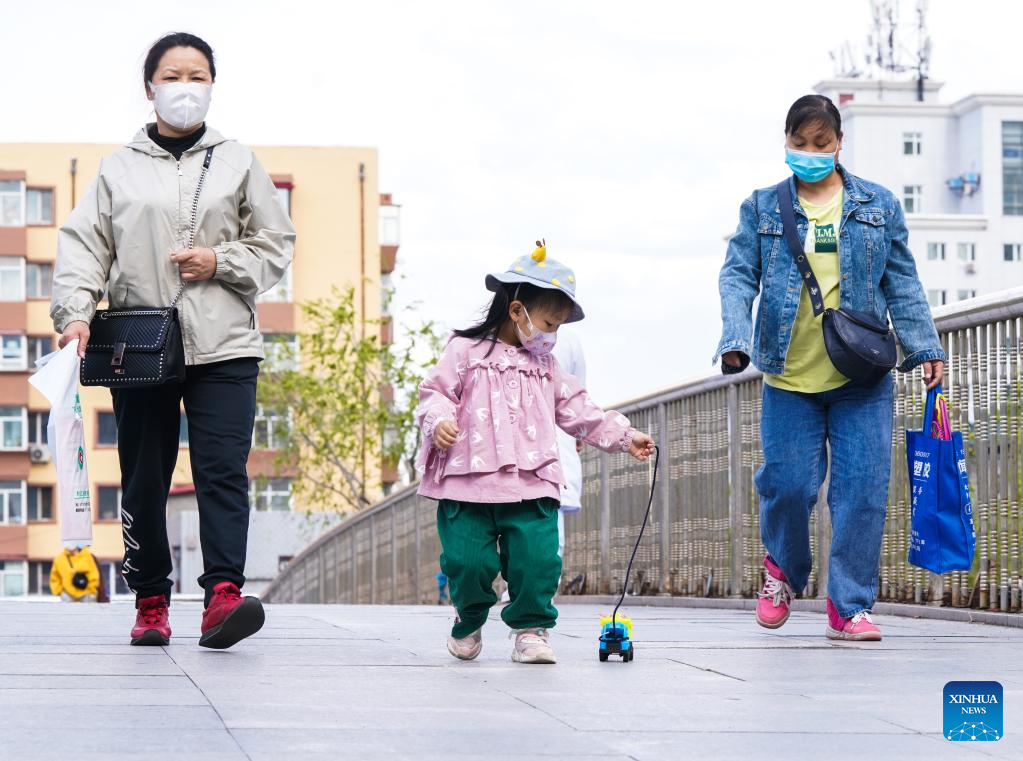 Citizens are seen at a park in Harbin, northeast China's Heilongjiang Province, May 11, 2022. Harbin started to resume normal life and production in an orderly manner from Wednesday. (Xinhua/Zhang Tao)