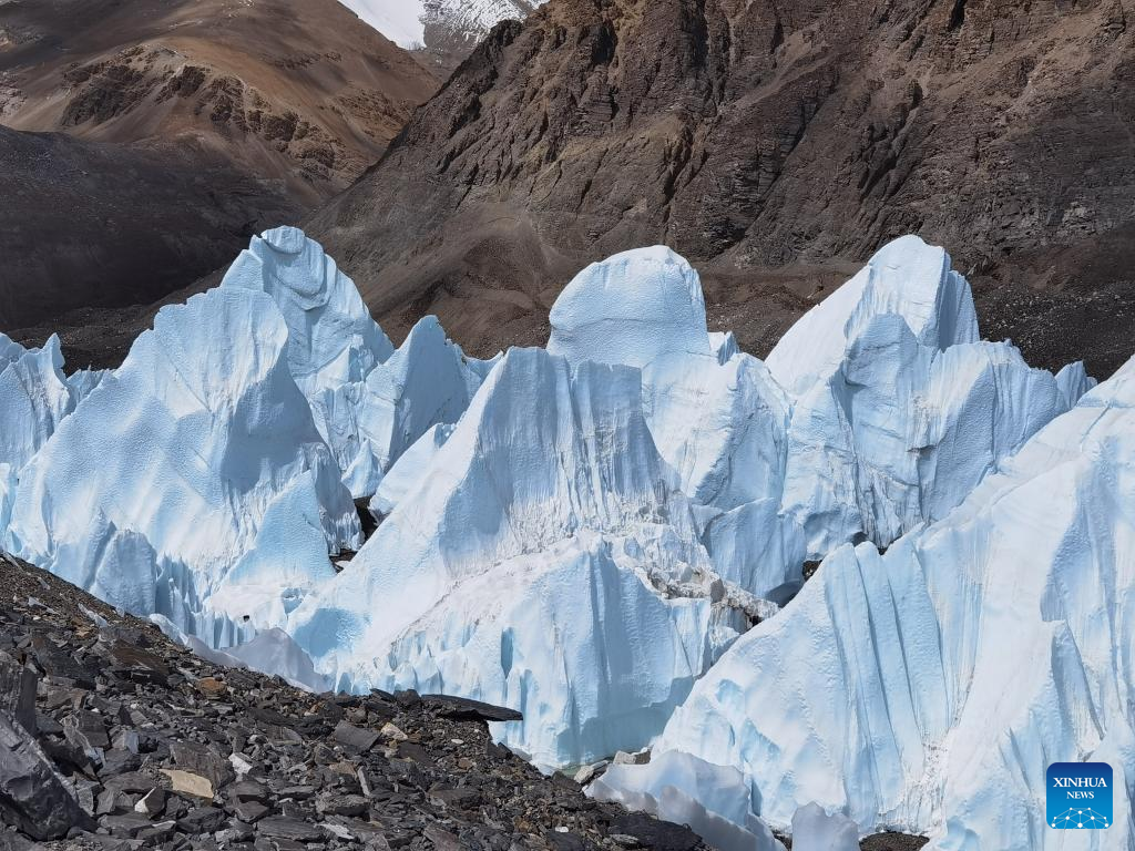Photo taken with a mobile phone shows a view of the East Rongbuk glacier on Mount Qomolangma, May 7, 2022. The new comprehensive scientific expedition on Mount Qomolangma, as part of China's second scientific research survey of the Qinghai-Tibet Plateau, is the country's first scientific research above an altitude of 8,000 meters on the peak.
