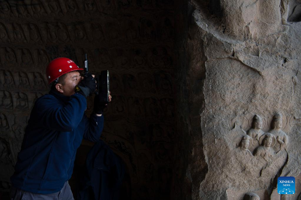 A group of technicians of the Yungang Research Institute are striving to create digital versions of Cave 17 of the Yungang Grottoes in Datong, north China's Shanxi Province.