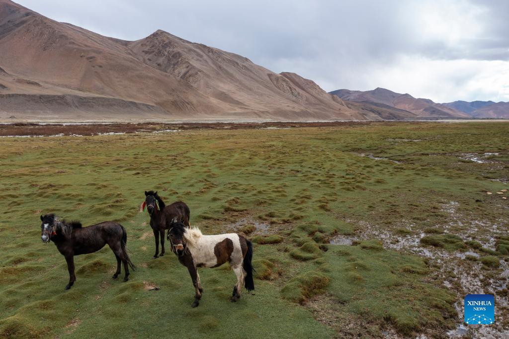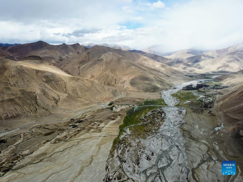 Aerial photo taken on May 11, 2022 shows wetland in the Qomolangma National Nature Reserve in Zhaxizom Township in Tingri County, southwest China's Tibet Autonomous Region. (Xinhua/Jiang Fan)