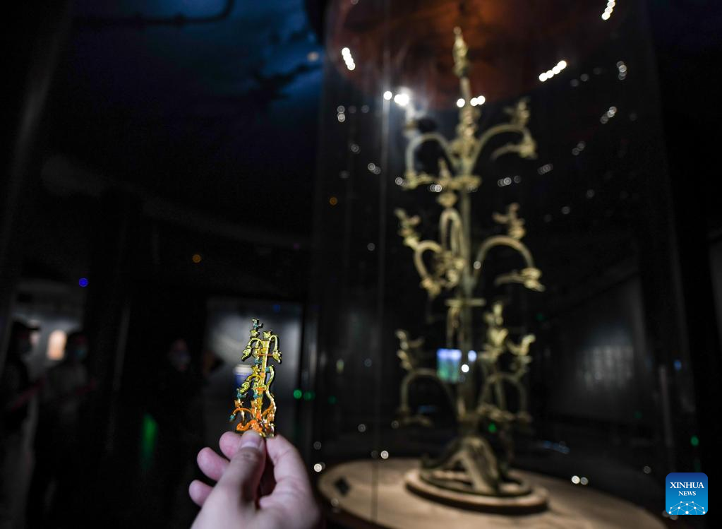 Products based on excavated cultural relics are popular among visiting tourists. (Xinhua/Wang Xi)