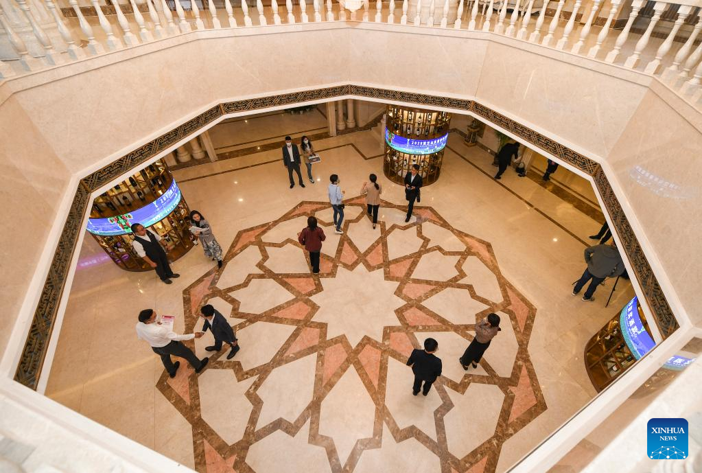 Participants view wines which have won international awards at a branch venue of the ProWein 2022 in Yinchuan, northwest China's Ningxia Hui Autonomous Region, May 15, 2022. (Xinhua/Feng Kaihua)