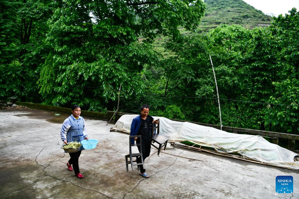 Zhao Youliang (R) and Jian Qin do housework together in Zhongguan Township, Zheng'an County, southwest China's Guizhou Province, May 12, 2022. (Xinhua/Yang Wenbin)