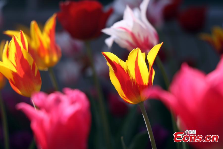 Photo shows tulip flowers of various colors in full bloom at the Toronto Botanic Garden, Toronto, Canada, May 15, 2022. (Photo: China News Service/Yu Ruidong)