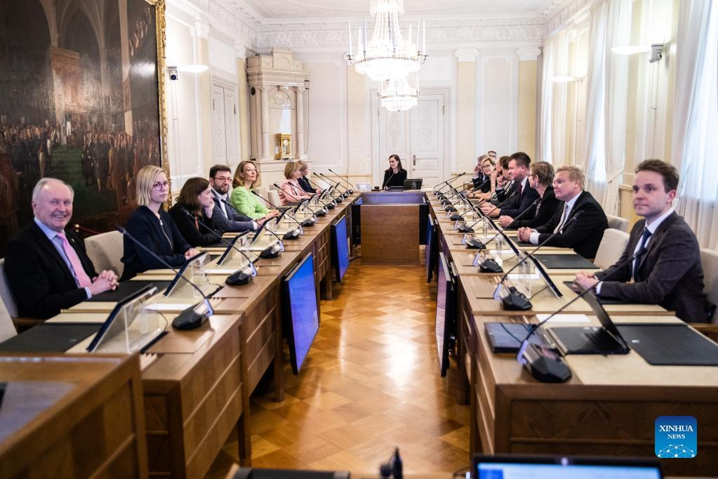 The cabinet of Finnish Prime Minister Sanna Marin holds a meeting on informing the North Atlantic Treaty Organization (NATO) about Finland's interest in engaging in accession talks in Helsinki, Finland, on May 17, 2022. Finnish Foreign Minister Pekka Haavisto on Tuesday signed the letter informing the North Atlantic Treaty Organization (NATO) about his country's interest in engaging in accession talks. (Finnish Prime Minister's Office/Handout via Xinhua)