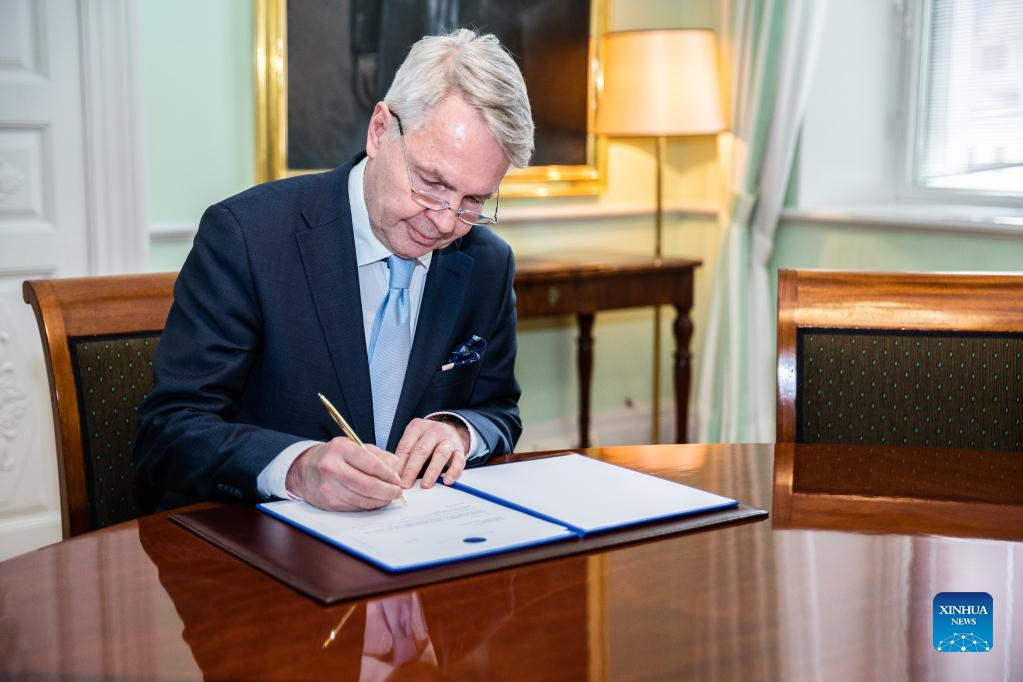 HELSINKI, May 17 (Xinhua) -- Finland's Foreign Minister Pekka Haavisto on Tuesday signed the letter informing the North Atlantic Treaty Organization (NATO) about his country's interest in engaging in accession talks.