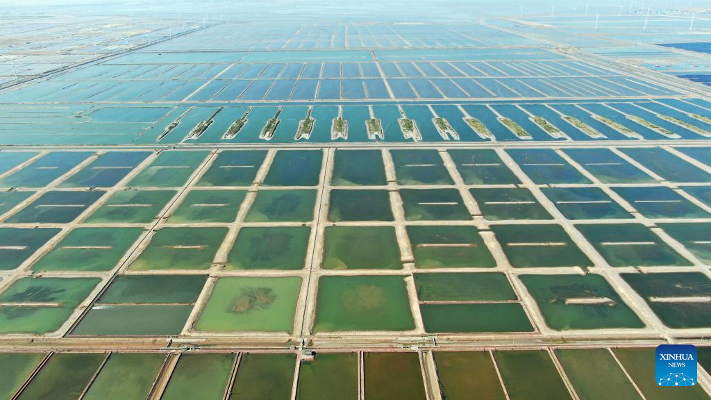 Photo taken on May 14, 2022 shows salt fields at Binhai Township, Zhanhua District, Binzhou City of east China's Shandong Province. (Xinhua/Fan Changguo)