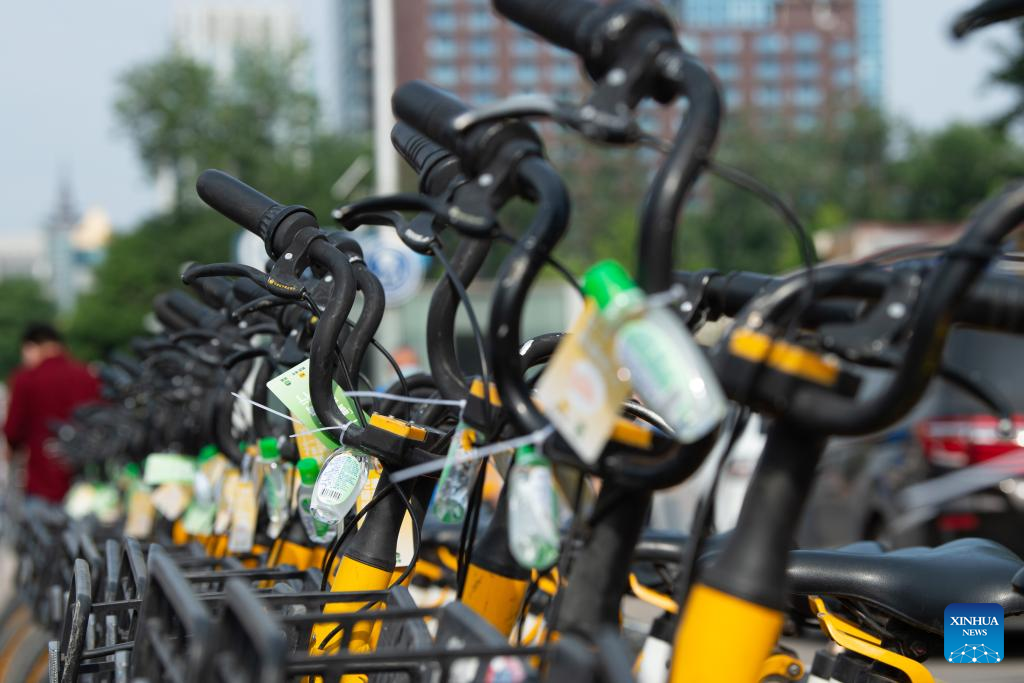 In Beijing, shared bikes have been disinfected and some of them are equipped with hand sanitizers recently as COVID-19 precaution measures, for the sake of the riders' health amid the recent COVID-19 resurgence. (Xinhua/Chen Zhonghao)