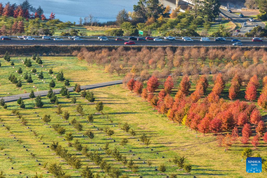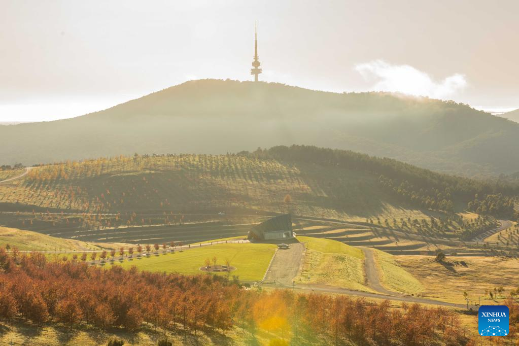 Photo taken on May 19, 2022 shows the autumn scenery of the National Arboretum in Canberra, Australia. (Photo by Chu Chen/Xinhua)