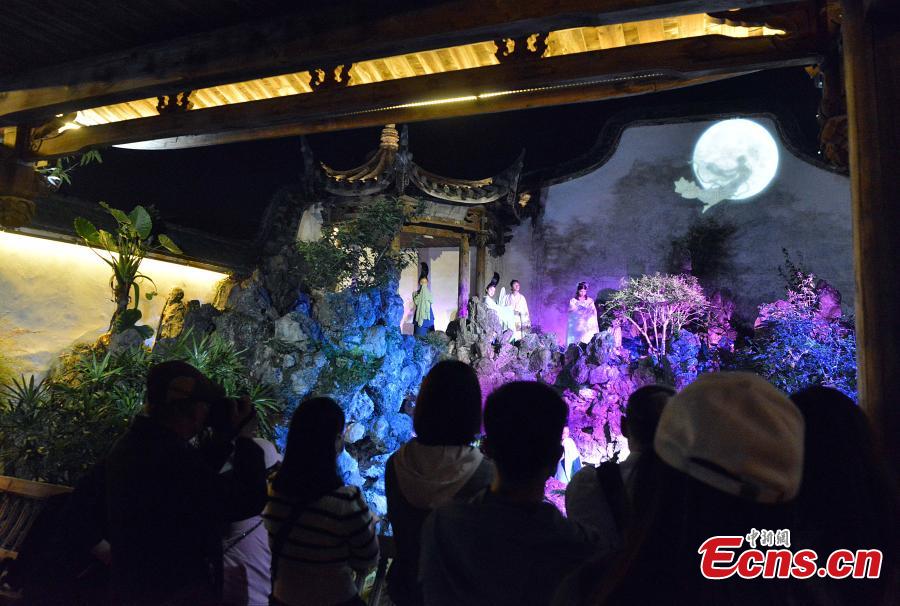 Visitors watch a traditional performance at the Three Lanes and Seven Alleys, a street district featuring a cluster of ancient residential buildings and the largest well-preserved historical district in China, May 18, 2022. (Photo: China News Service/Zhang Bin)