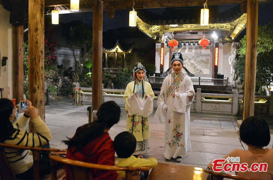A traditional performance is staged at the Three Lanes and Seven Alleys, a street district featuring a cluster of ancient residential buildings and the largest well-preserved historical district in China, May 18, 2022. (Photo: China News Service/Zhang Bin)
