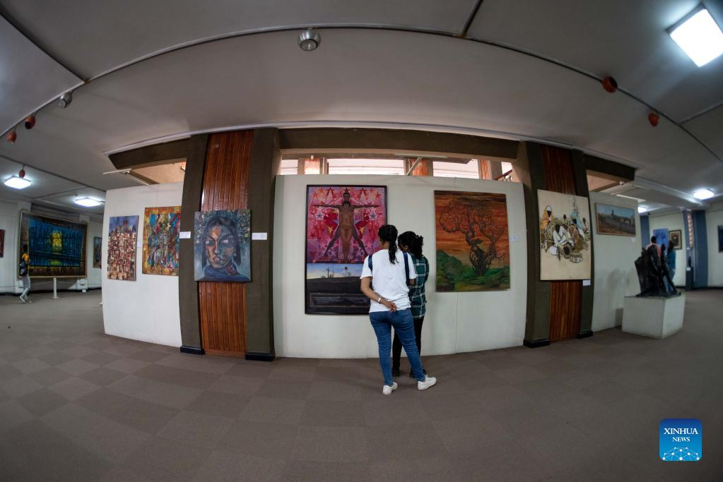 People visit the National Museum of Ethiopia in Addis Ababa, Ethiopia, on May 18, 2022. The museum houses collections of precious heritages, including fossilized bones of a female of the hominin species Australopithecus afarensis, named "Lucy", which is believed to live about 3.2 million years ago. (Xinhua/Michael Tewelde)