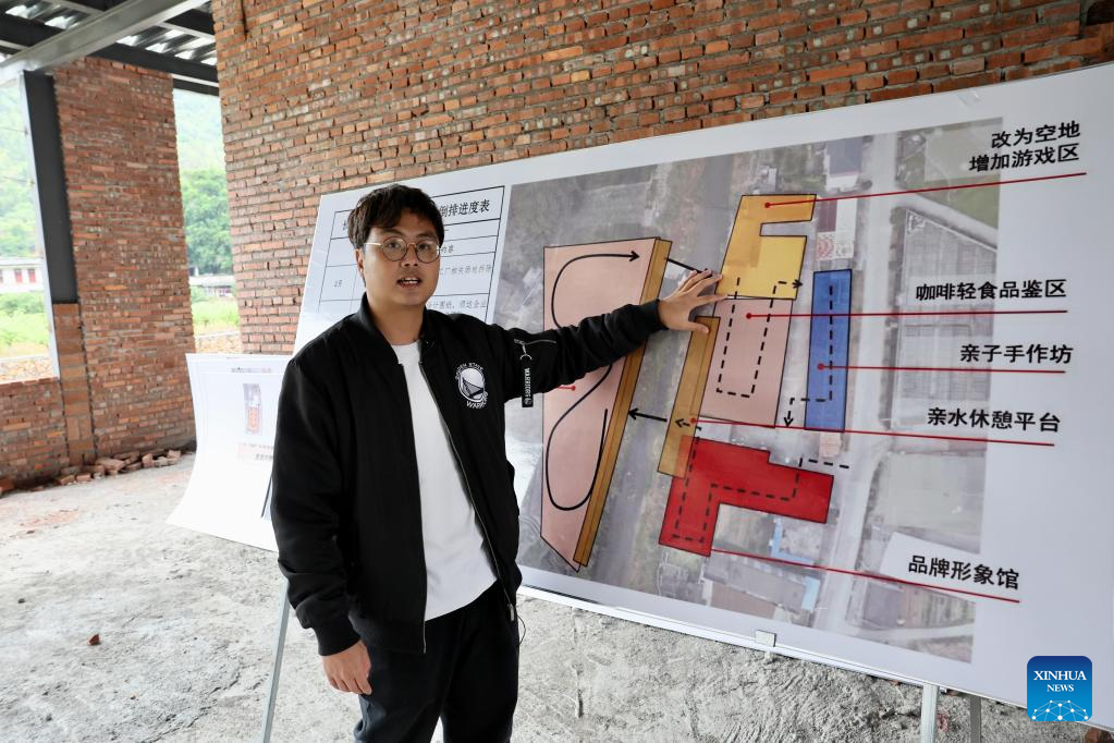 Chan Chun-Chieh introduces the factory he designed in Changqing Town of Yongtai County, southeast China's Fujian Province, May 16, 2022. (Xinhua/Jiang Kehong)
