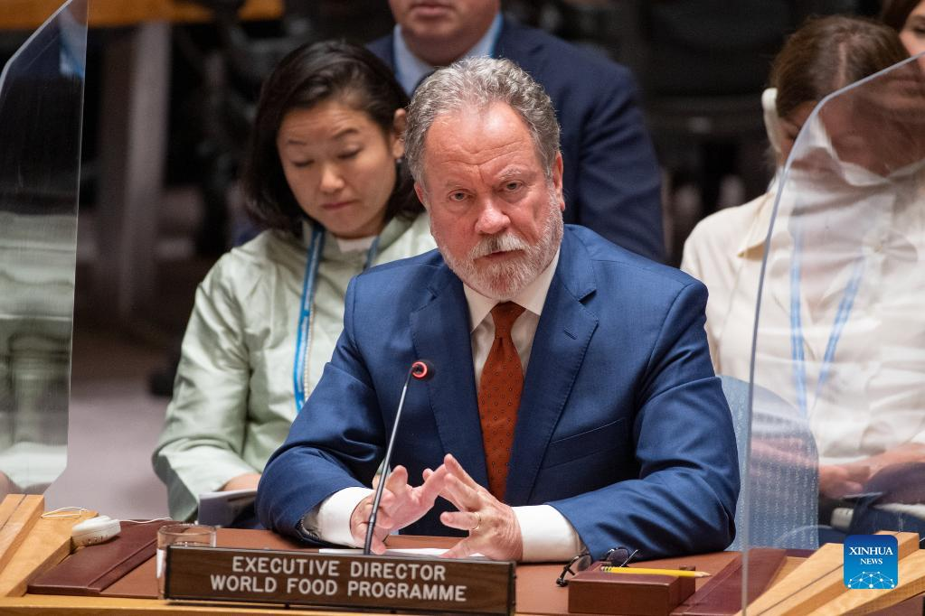 David Beasley, chief of the World Food Programme, briefs the Security Council meeting on conflict and food security at the UN headquarters in New York, May 19, 2022. The UN Security Council met on Thursday to address food insecurity and called on the international community to strengthen cooperation to solve it. (Eskinder Debebe/UN Photo/Handout via Xinhua)