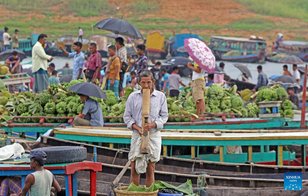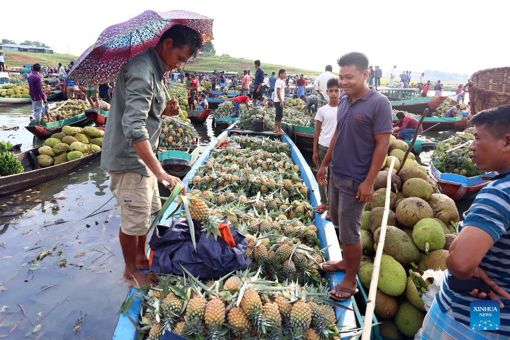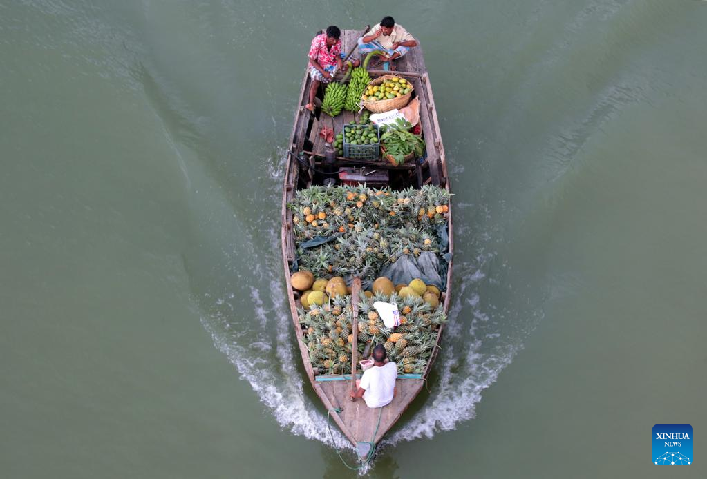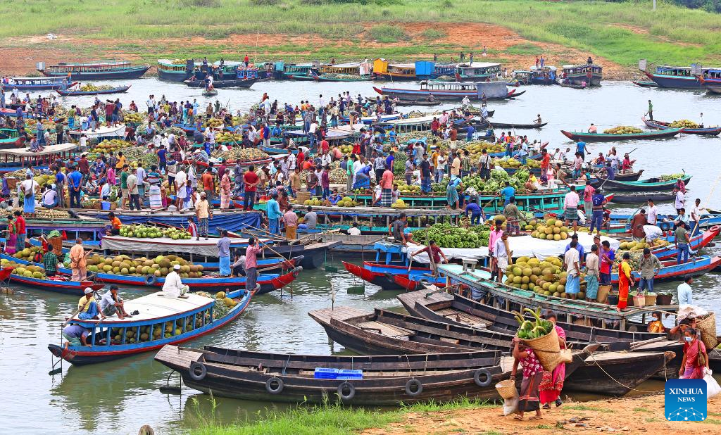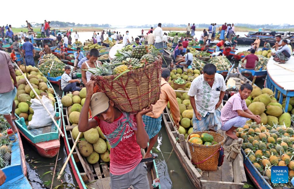 Vendors sell fruits at a floating market in Rangamati, Bangladesh, on May 21, 2022. (Xinhua)