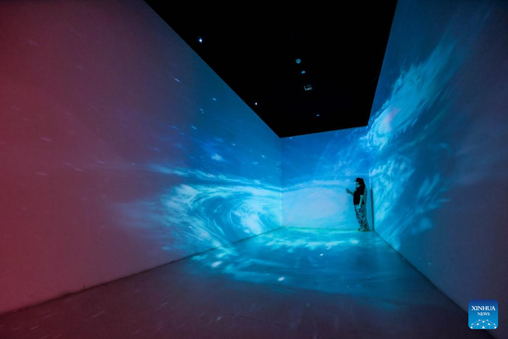 The exhibition center of the national big data (Guizhou) comprehensive pilot zone has set up a series of installations displaying the changes brought by big data industry to production and people's daily life. (Xinhua/Ou Dongqu)