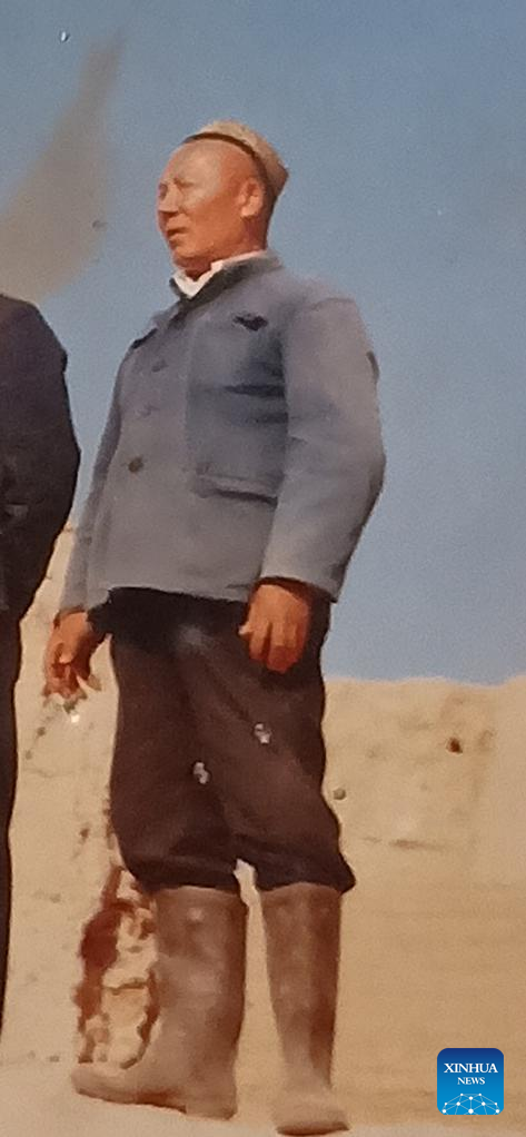 Undated photo provided by the interviewee shows Reheman Seti, Gulibekge Maiming Reheman's grandfather, at Jiaohe ancient city, Turpan, northwest China's Xinjiang Uygur Autonomous Region.