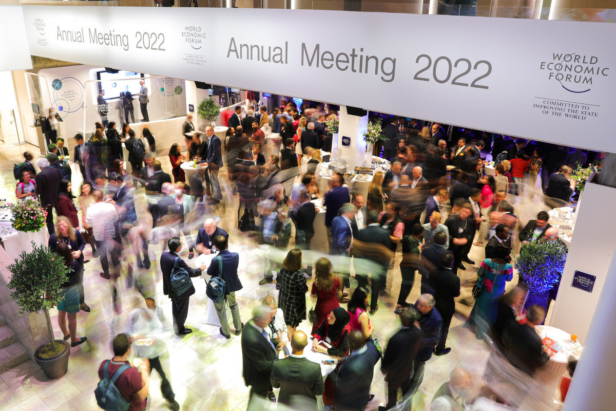 Participants attend the welcome reception in the Congress Center for the World Economic Forum (WEF) 2022 Annual Meeting in Davos, Switzerland, May 22, 2022. [Photo/Xinhua]
