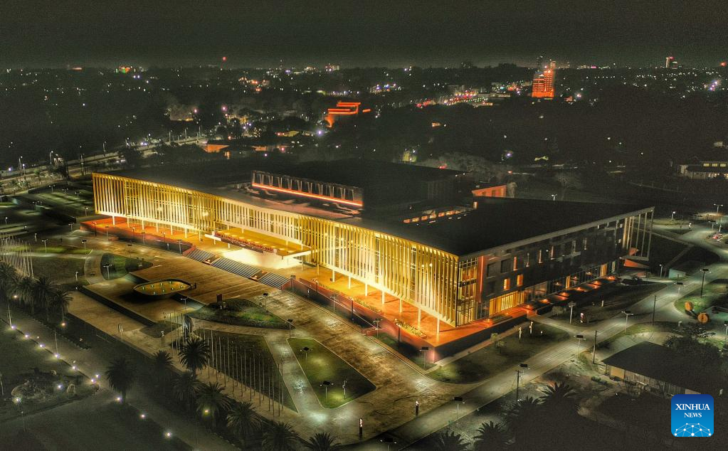 Aerial photo taken on May 26, 2022 shows the Kenneth Kaunda International Conference Center in Lusaka, Zambia. Zambia on Tuesday commissioned an ultra-modern international conference center financed by China. The Kenneth Kaunda International Conference Center, with its main hall having a 2,500 sitting capacity, has been built to host the African Union (AU) mid-year summit this year. (Xinhua)