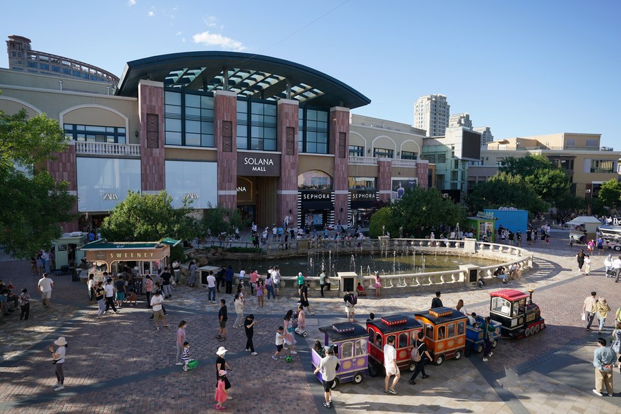 People enjoy themselves at a shopping mall in Chaoyang District of Beijing, capital of China, May 29, 2022. (Xinhua/Ju Huanzong)