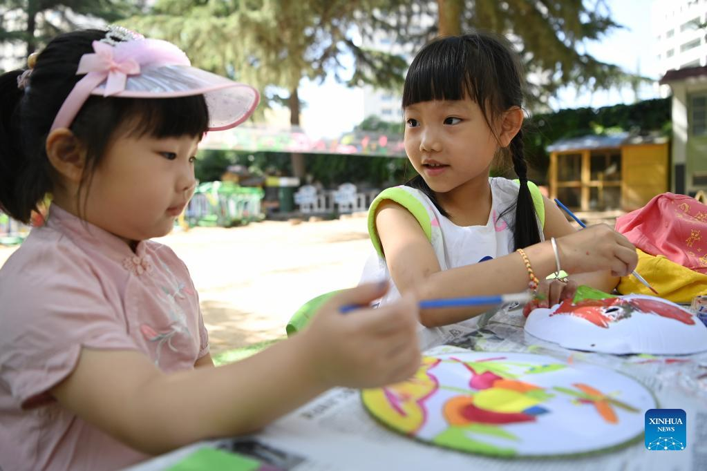 Children take part in a painting activity to celebrate the International Children's Day at a kindergarten in Xigu District of Lanzhou, northwest China's Gansu Province, June 1, 2022. (Xinhua/Chen Bin)
