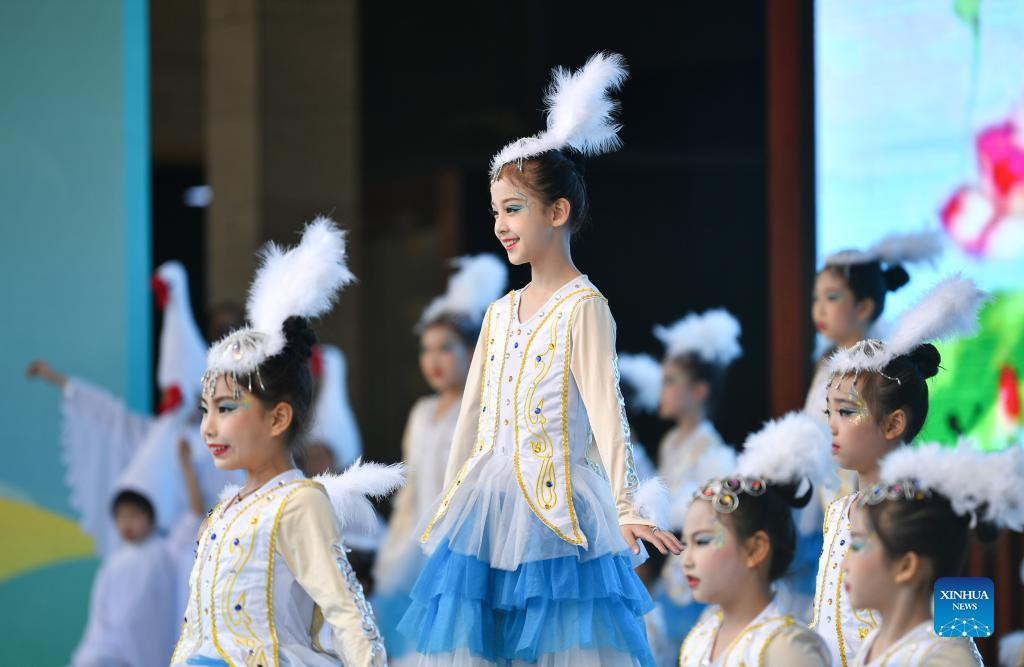 Children take part in a performance to celebrate the International Children's Day at Houzaimen primary school in Xincheng District of Xi'an, northwest China's Shaanxi Province, June 1, 2022. (Xinhua/Zhang Bowen)