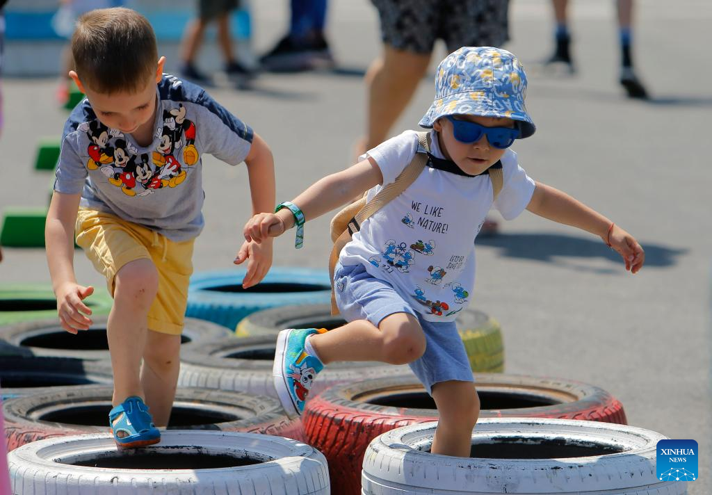 Children play during an event marking International Children's Day in Bucharest, Romania, on June 1, 2022. (Photo by Cristian Cristel/Xinhua)