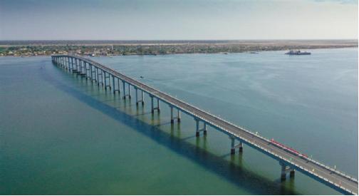 The 1600-meter-long Foundiougne Bridge, the longest bridge in Senegal, is opened on March 26. The bridge was financed by Senegal and China through the Export-Import Bank of China (China EximBank) and built by a Chinese company. (Photo/Courtesy of Wuhan Engineering Co., Ltd. of China Railway Seventh Group)
