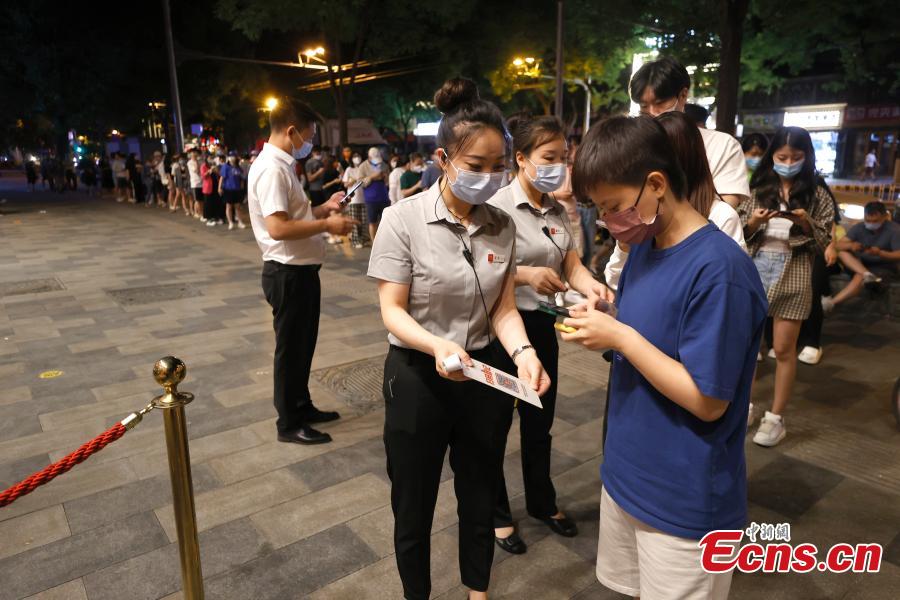 Customers queue to scan health codes to enter a restaurant at midnight after over month-long dine-in service suspension in Beijing, June 6, 2022. (Photo: China News Service/Fu Tian)