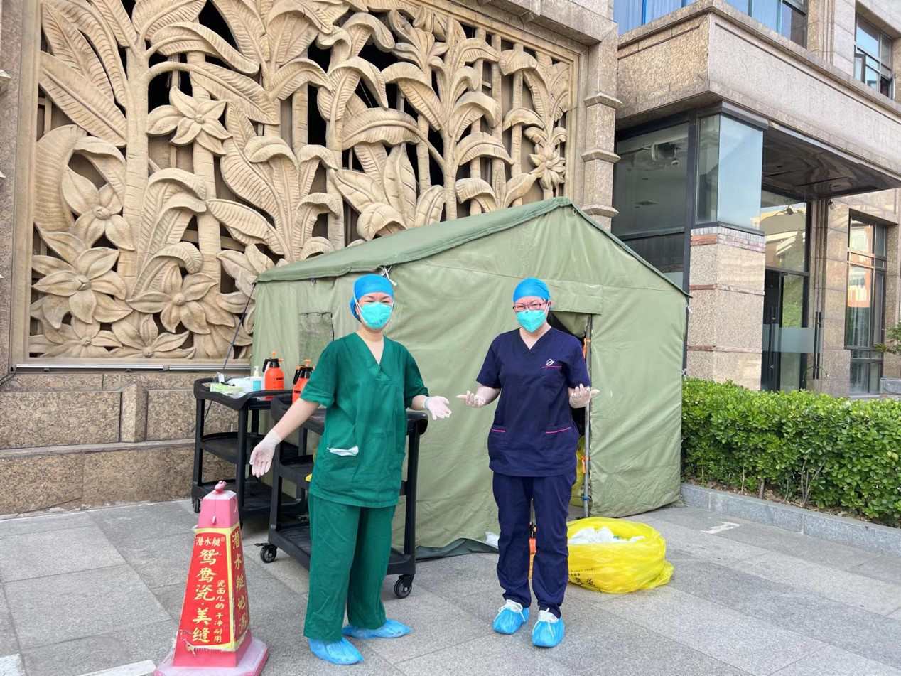 Photo shows two of China’s “angels in white.” Indoor sample collection and outdoor nucleic acid tests have been crucial parts of Wang's daily work as a nurse during the COVID-19 pandemic. (Photo by People's Daily Online)