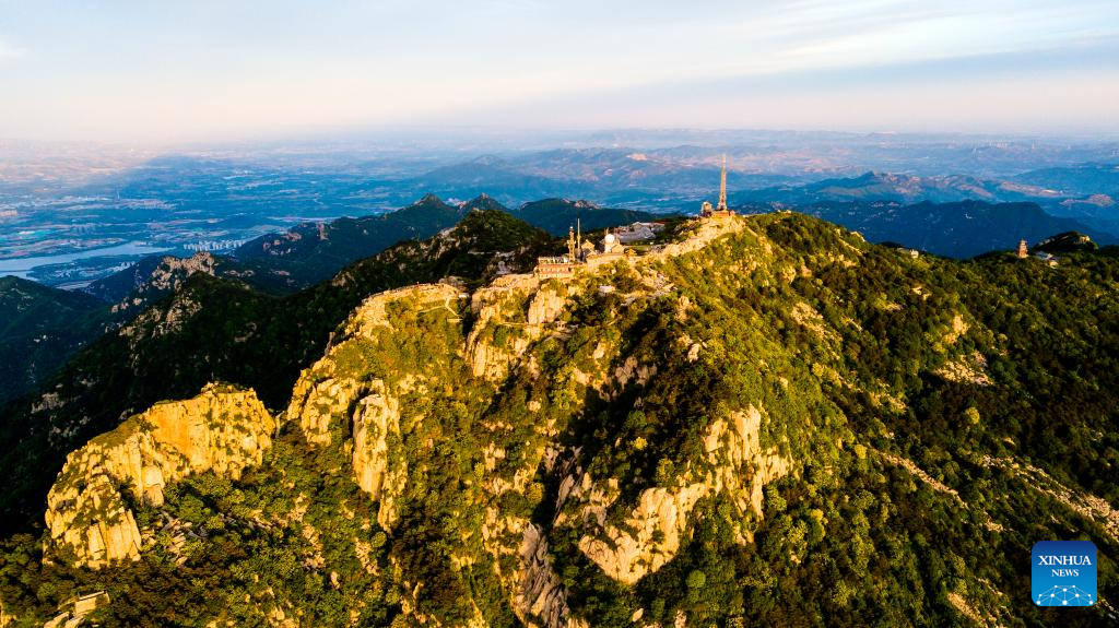 Aerial photo taken on May 26, 2022 shows the scenery of Mount Taishan in east China's Shandong Province. (Xinhua/Guo Xulei)