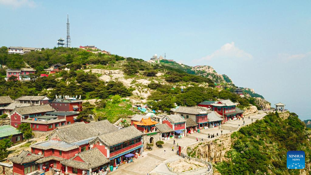 Aerial photo taken on May 24, 2022 shows the scenery of Mount Taishan in east China's Shandong Province. (Xinhua/Guo Xulei)