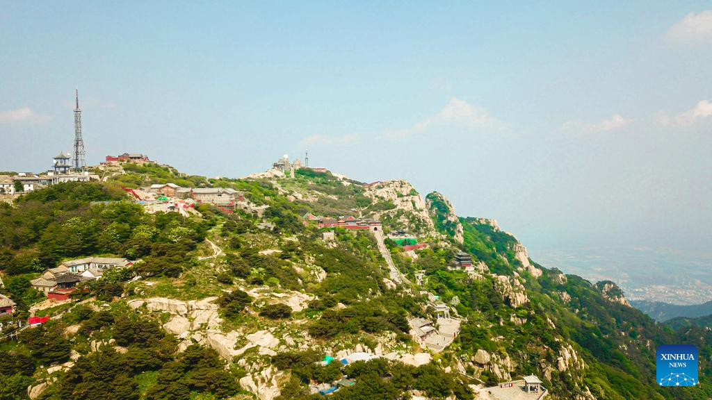 Aerial photo taken on May 24, 2022 shows the scenery of Mount Taishan in east China's Shandong Province. (Xinhua/Guo Xulei)