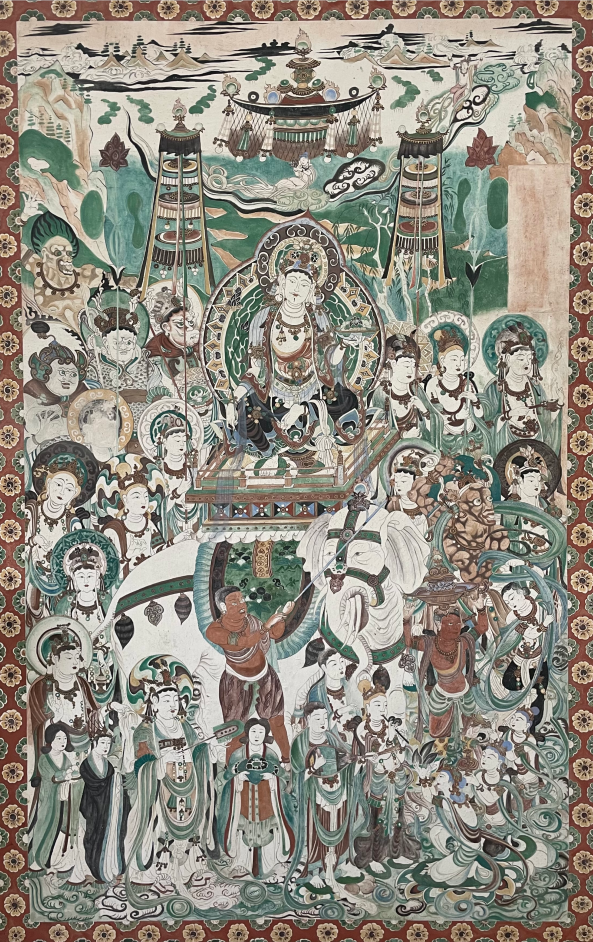 Photo shows the painting by Qin Yueyu based on a mural found inside cave No. 159 of the Mogao grottoes in Dunhuang, northwest China’s Gansu Province. (Photo courtesy of the interviewee)