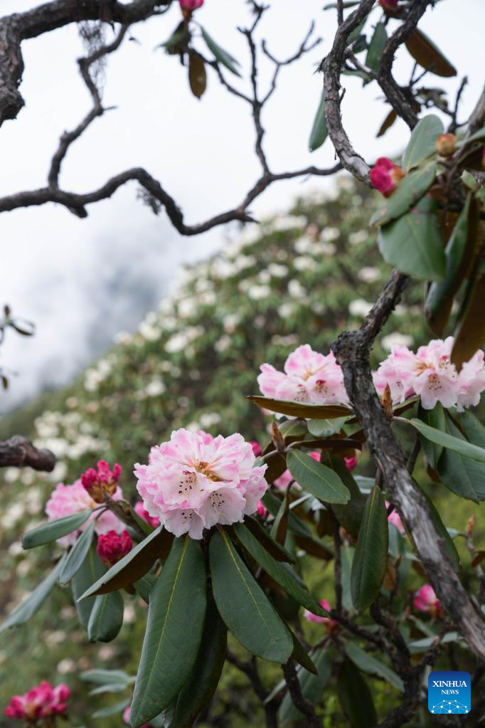 Blossoms of alpine azalea are seen at Giant Panda National Park in Longmen Mountains in southwest China's Sichuan Province, June 5, 2022. (Xinhua/Jiang Hongjing)