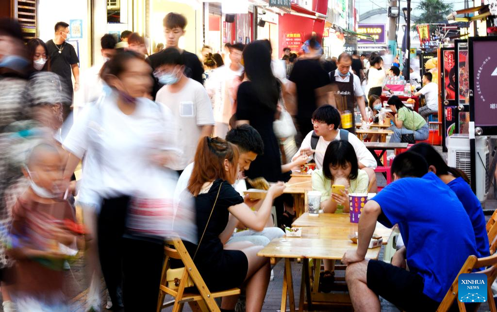 People eat at food stalls in Xi'an, northwest China's Shaanxi Province, June 5, 2022. (Xinhua/Liu Xiao)