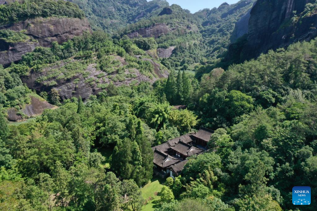 Aerial photo taken on June 6, 2022 shows the scenery of a park dedicated to Zhu Xi, a renowned Chinese philosopher in the 12th century, in Mount Wuyi in southeast China's Fujian Province.