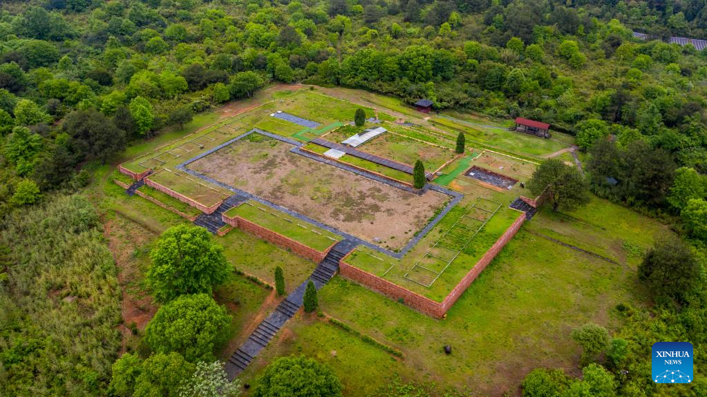 Aerial photo taken on April 18, 2022 shows the archaeological site of a protection area for the remains of ancient Han Dynasty (202 BC-220 AD) to the southeast of Mount Wuyi, in southeast China's Fujian Province.
