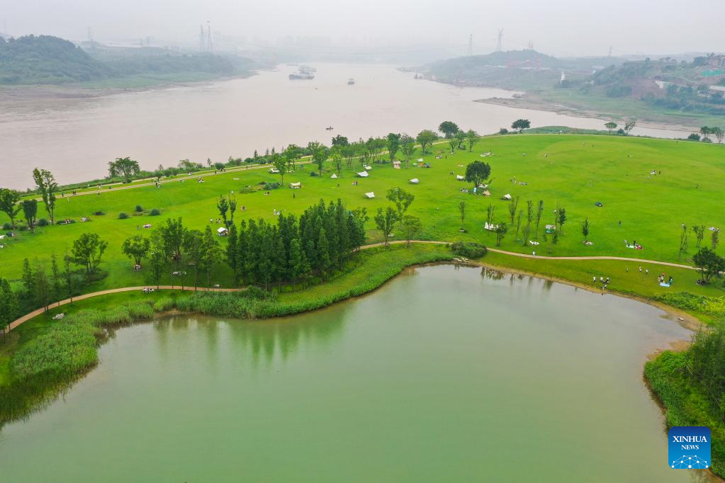 Aerial photo taken on June 5, 2022 shows a view of Guangyang Isle in southwest China's Chongqing.