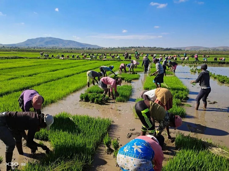 Local farmers in Madagascar plant hybrid rice under the guidance of Chinese agricultural experts. (Photo/Courtesy of China International Development Cooperation Agency)
