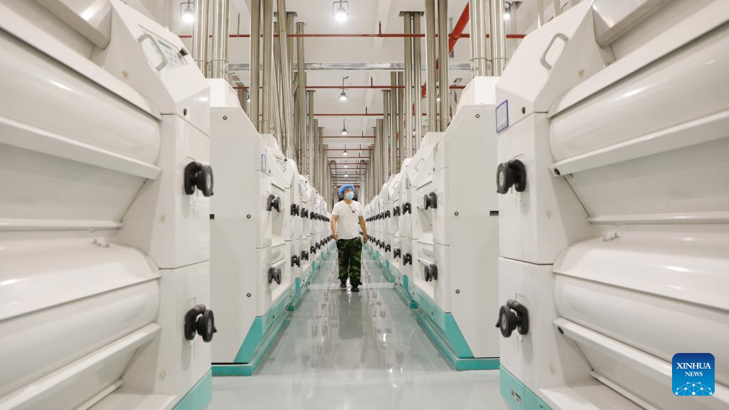 A staff member works at a wheat processing plant in Woyang County of Bozhou City, east China's Anhui Province, June 7, 2022. (Xinhua/Zhang Duan)