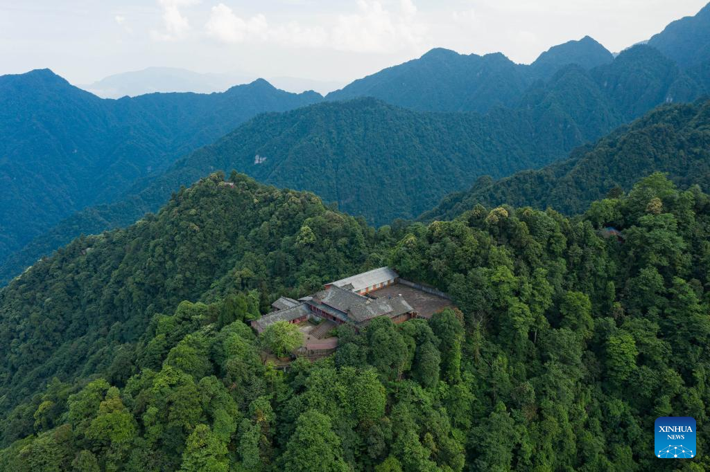 Aerial photo taken on June 7, 2022 shows the scenery of Mount Emei in southwest China's Sichuan Province.