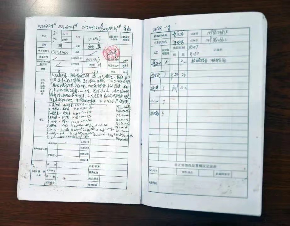The logbook Yang Yong left behind. (Photo/China State Railway Group)