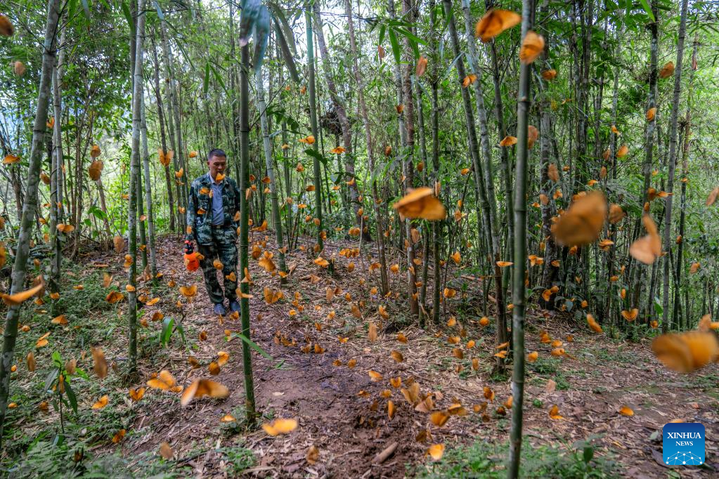 KUNMING, June 10 (Xinhua) -- As of Thursday, hundreds of millions of butterflies began to emerge from chrysalises in the Honghe butterfly valley in southwest China's Yunnan Province, forming a rare ecological spectacle.