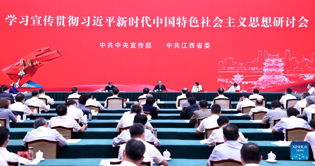 Huang Kunming, a member of the Political Bureau of the Communist Party of China (CPC) Central Committee and head of the Publicity Department of the CPC Central Committee, addresses a seminar on the subject of studying and implementing Xi Jinping Thought on Socialism with Chinese Characteristics for a New Era in Jinggangshan, east China's Jiangxi Province, June 10, 2022. (Xinhua/Liu Bin)