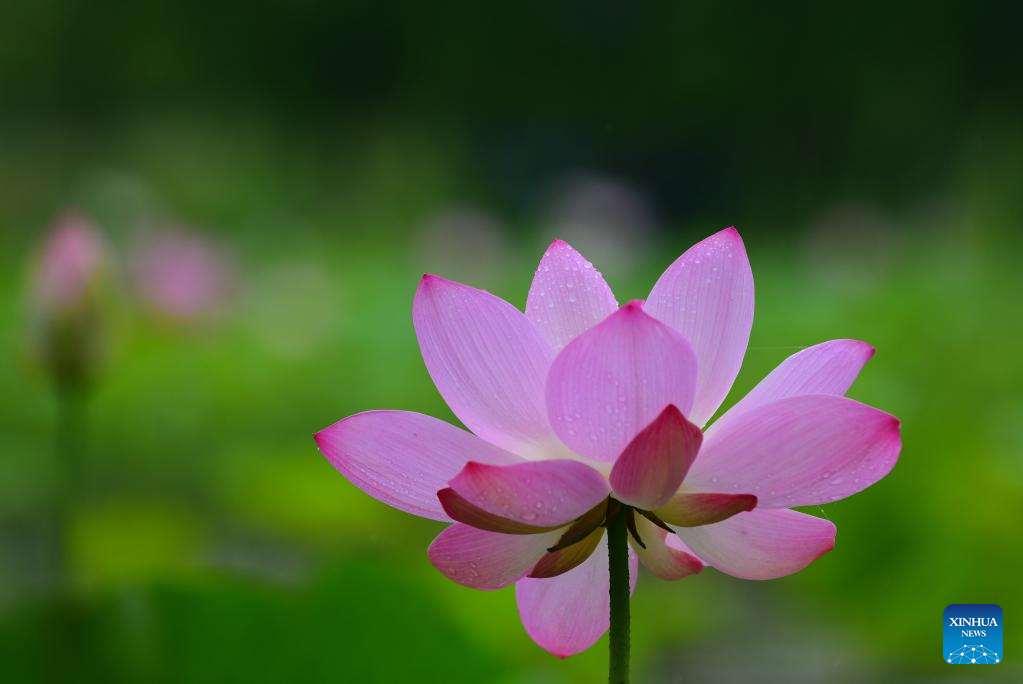 A lotus flower is seen at a wetland park in Wuxi, east China's Jiangsu Province, June 12, 2022. (Photo by Huan Yueliang/Xinhua)